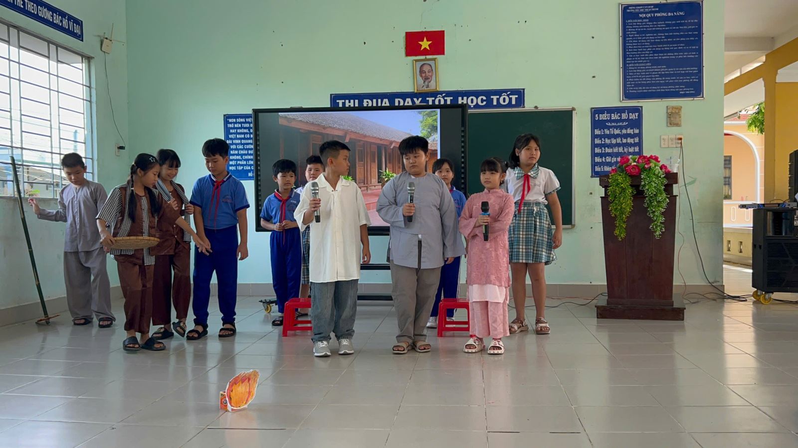 Bên cạnh phong trào thi đua sôi nổi của giáo viên để hưởng ứng ngày lễ lớn, học sinh toàn trường cũng háo hức tham gia nhiều hoạt động văn nghệ – học thuật vui tươi và bổ ích như